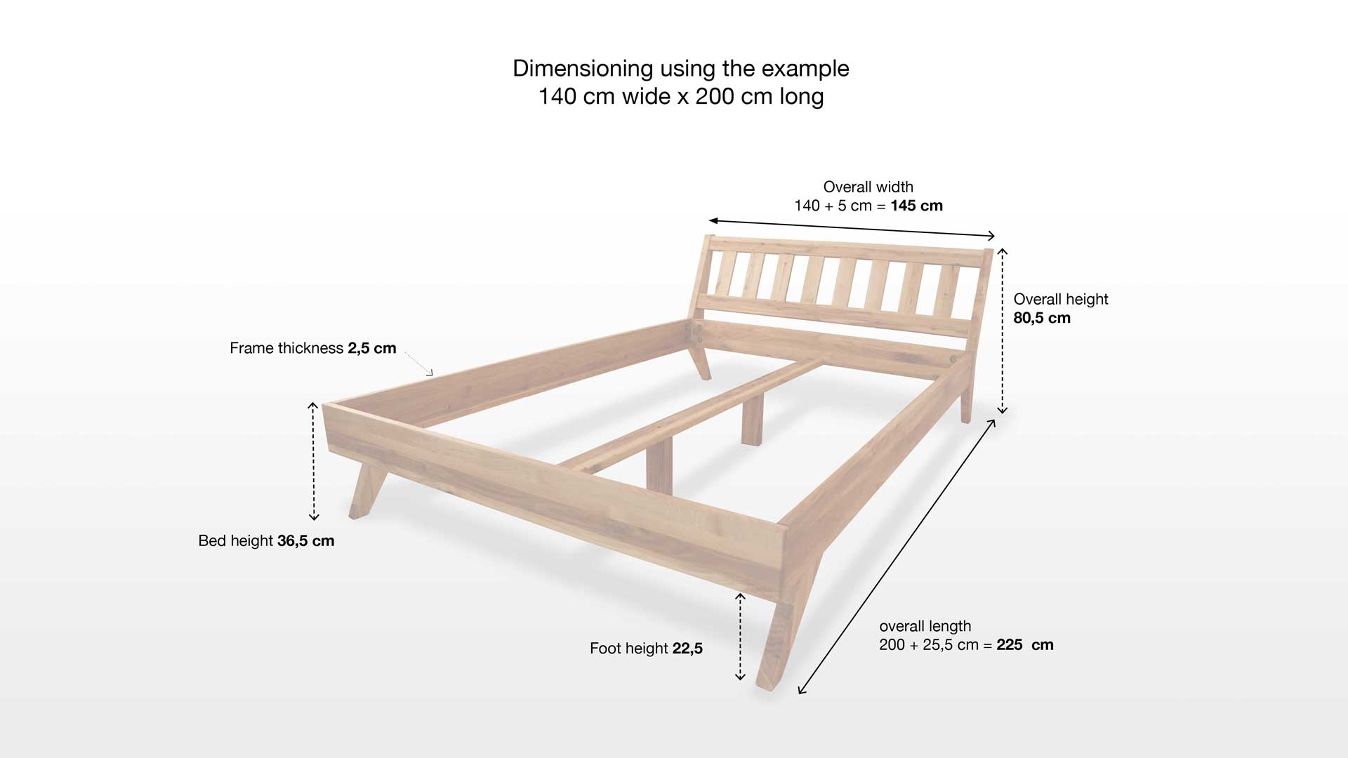 - Frame details: Spars 2,5 cm, center support 9 cm wide