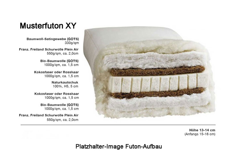 - für Bett ohne Rahmen einen einteiligen Futon und