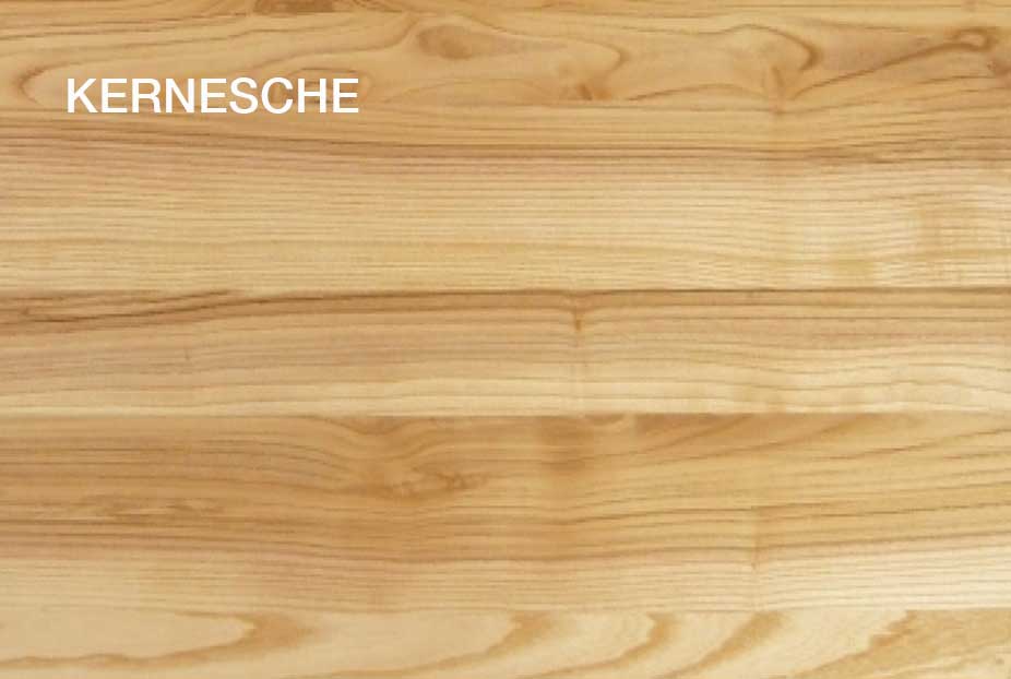 Bei den sogenannten „Kerneschen“ handelt es sich um Eschen, die älter als 100 Jahre sind. Der in Europa wachsende Baum bildet ab diesem Alter einen dunkelbraunen, fast schwarzen Kern, der sich vom dem restlichen hellen, gräulichen Splintholz deutlich hervorhebt. Aufgrund ihrer Kombination aus Festigkeit und Elastizität ist diese Holzart besonders im Möbel- und Innenausbau sehr gefragt.