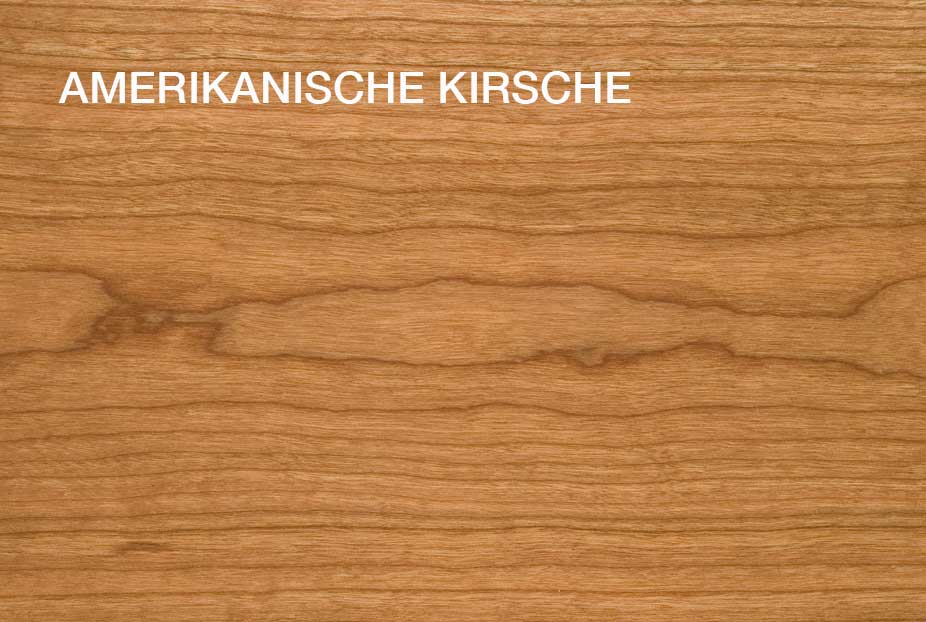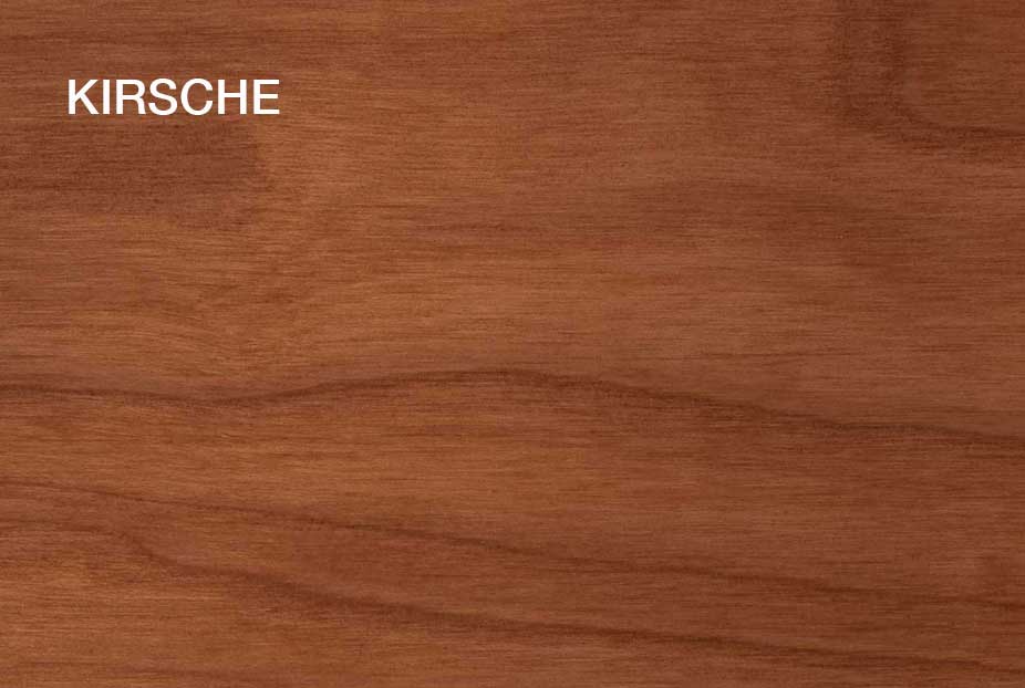 Die Kirsche, meist Vogelkirsche, ist in weiten Teilen der Erde verbreitet: Sowohl Mitteluropa als auch Nordamerika, Nordafrika und Vorderindien zählen zu ihren Herkunftsorten. Sowohl als Furnierholz als auch als Möbelholz ist das mittelschwere, gelb-weißliche Holz beliebt, das eine leicht rötliche Färbung im Kern aufweist. Diese Farbgebung kann sich mit den Jahren bei großer Lichteinstrahlung intensivieren und verdunkeln, was eine besonders warme Atmosphäre schafft.