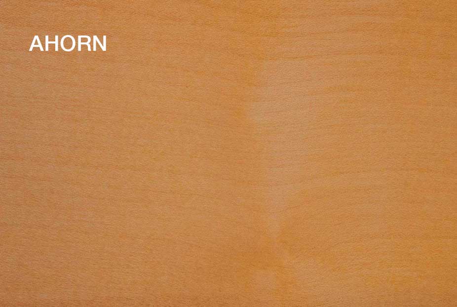 Das Holz des Ahorns stammt meist aus Nordamerika oder Eurasien und wächst dort in rund 200 verschiedenen Varianten. Besonders beliebt sind hierzulande jedoch zwei Arten: Der Bergahorn, dessen Edellaubholz sich besonders durch seine einheitlich helle Farbe kennzeichnet, und der Spitzahorn, dessen Färbung eher ins Weiß-Rötliche geht. Der Ahorn besitzt eine mittlere Dichte und bleibt in seiner Qualität langfristig erhalten, weshalb er im Möbelbau besonders beliebt ist.