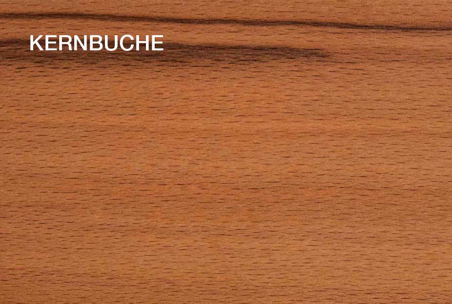 Bei der Kernbuche handelt es sich um eine spezielle Art des Buchenholzes: Das auch als „Wildbuche“ bezeichnete Holz hebt sich durch einen dunklen, lebendigen Farbton und eine deutliche Maserung von anderen Sorten ab und steht im Kontrast zu dem der herkömmlichen Rotbuche. Diese Verfärbung entsteht bei besonders alten Buchen, da das Innere des Stammes mit zu wenig Nährstoffen versorgt wird. Dem Möbelbau kommt genau diese Optik zugute, die eine lebendige Oberfläche verleiht, ohne dabei an Stabilität einzubüßen.