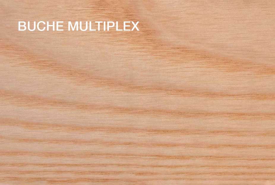Oftmals wird das Holz der Buche in Multiplex-Platten verarbeitet. Dies sind Sperrholzplatten, die wiederum aus mehreren Furnierlagen bestehen und eine Dichte von 760 kg/m³ aufweisen. Sowohl für die Inneneinrichtung als auch den Außenbereich sind die Multiplex-Platten dank ihrer Robustheit und Stabilität bestens geeignet. Optisch ist das Holz mit Massivholz zu vergleichen, was ihm ein hochwertiges Aussehen verleiht.