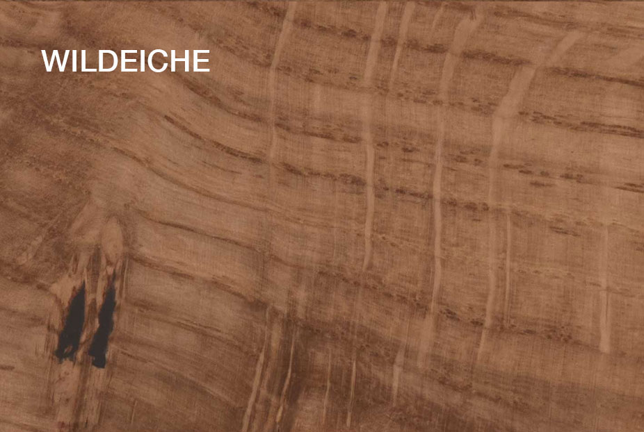Bei der Wildeiche handelt es sich nicht, wie vielleicht angenommen, um eine spezielle Eichenart, sondern vielmehr um eine bestimmte Sortierung des Eichenholzes. Die deutliche, markante und wilde Struktur ist das besondere Merkmal des Wildeichenholzes. Das natürlich bräunliche Farbenspiel wird mit den Jahren noch etwas dunkler und gelblicher, was sich jedoch kaum erkennen lässt. Dank seiner enormen Stabilität und Festigkeit ist es besonders im Bau von Massivholzmöbeln sehr beliebt.