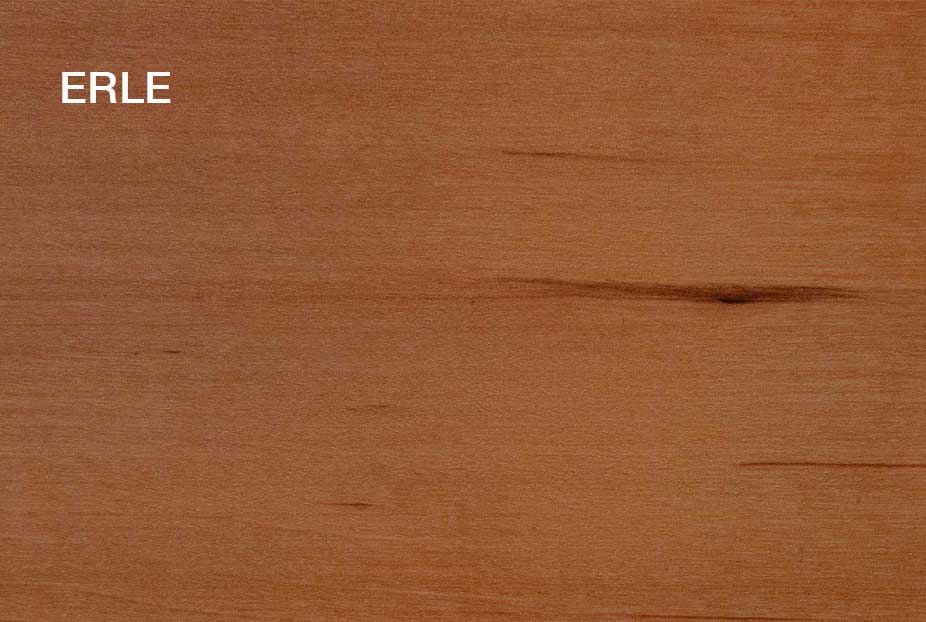 Die Erle stammt hauptsächlich aus Europa, Vorderasien und Nordafrika. Besonders zwei Arten finden häufig Verwendung: Die Schwarzerle und die Grauerle, wobei beide den Splintholzbäumen angehören. Die leicht rötliche Färbung vermischt sich mit Weiß- und Gelbtönen, dunkelt jedoch bei hoher Lichteinstrahlung nach. Das weiche Holz wird häufig zur Herstellung von Spanplatten oder in Kombination mit anderen Holzsorten verwendet, da es sich besonders gut als Bindholz einsetzen lässt.