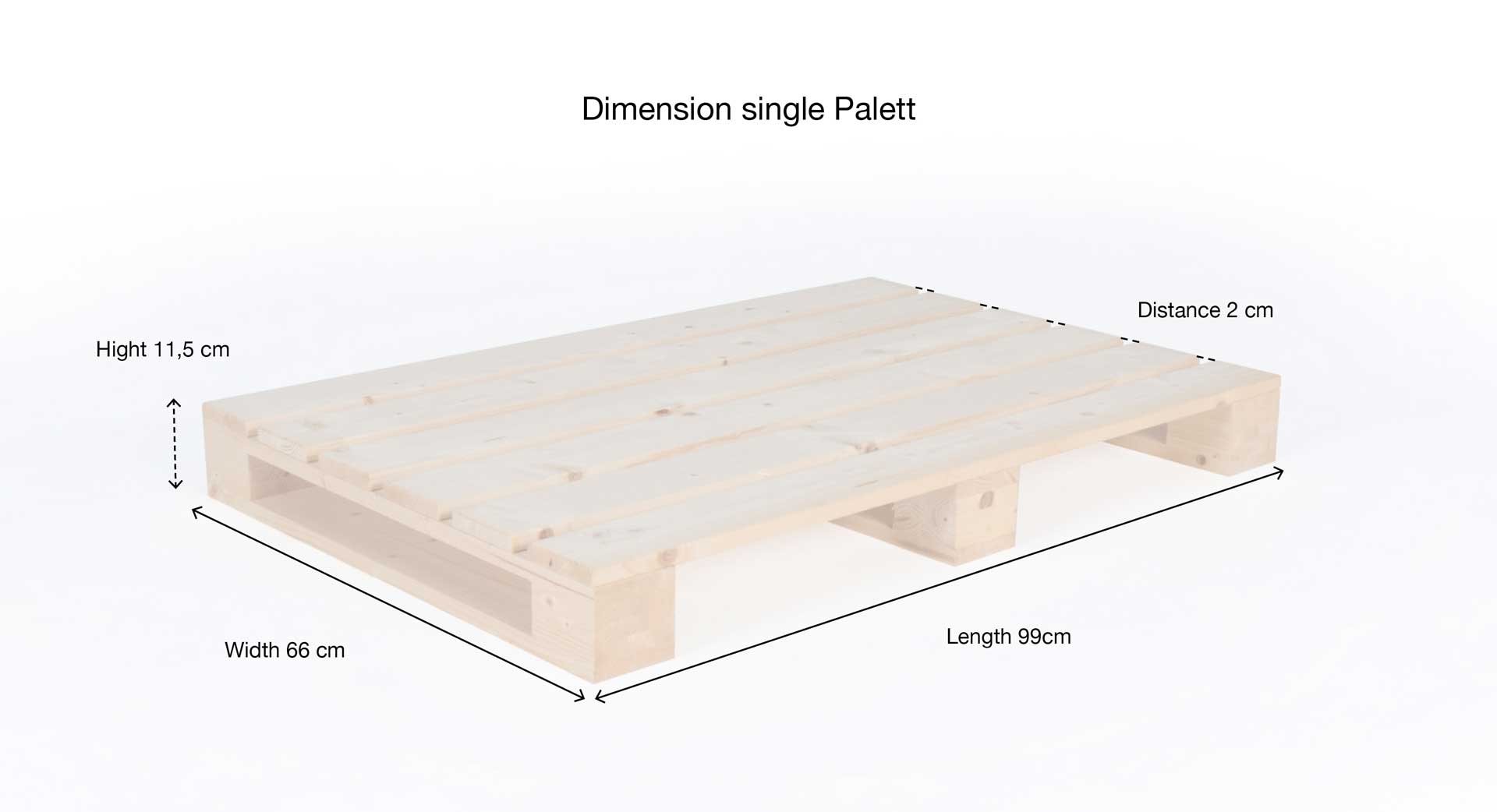 And whoever wants to have it now, here you go: Pallet - 66 cm x 99 cm x 11,5 cm: single as a low-lying seating furniture, in a double pack as a small guest bed (70/200), in a three-pack as a single bed (100/200),